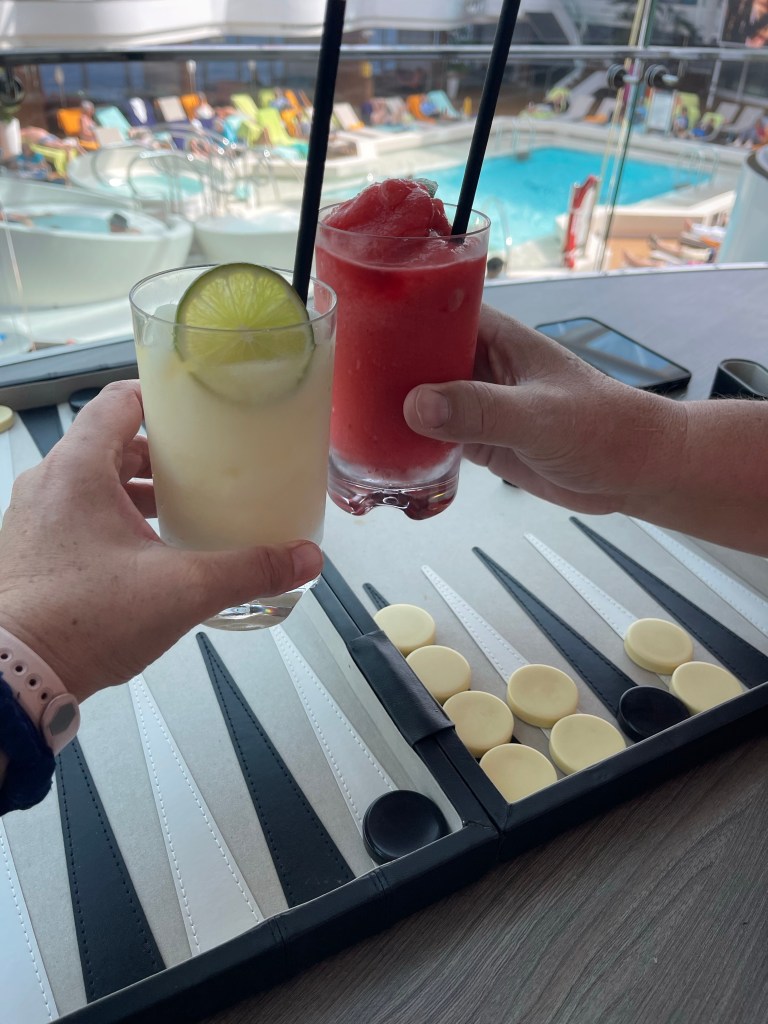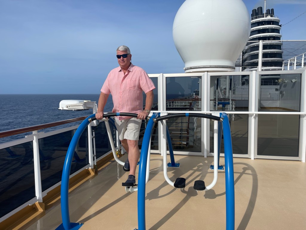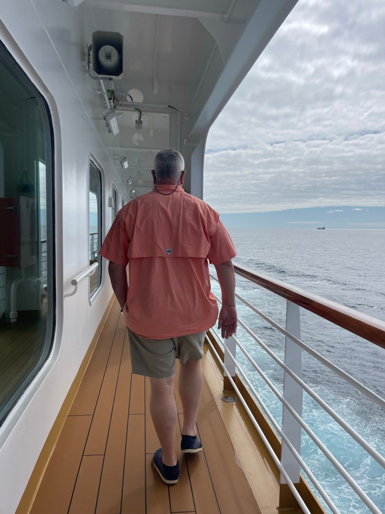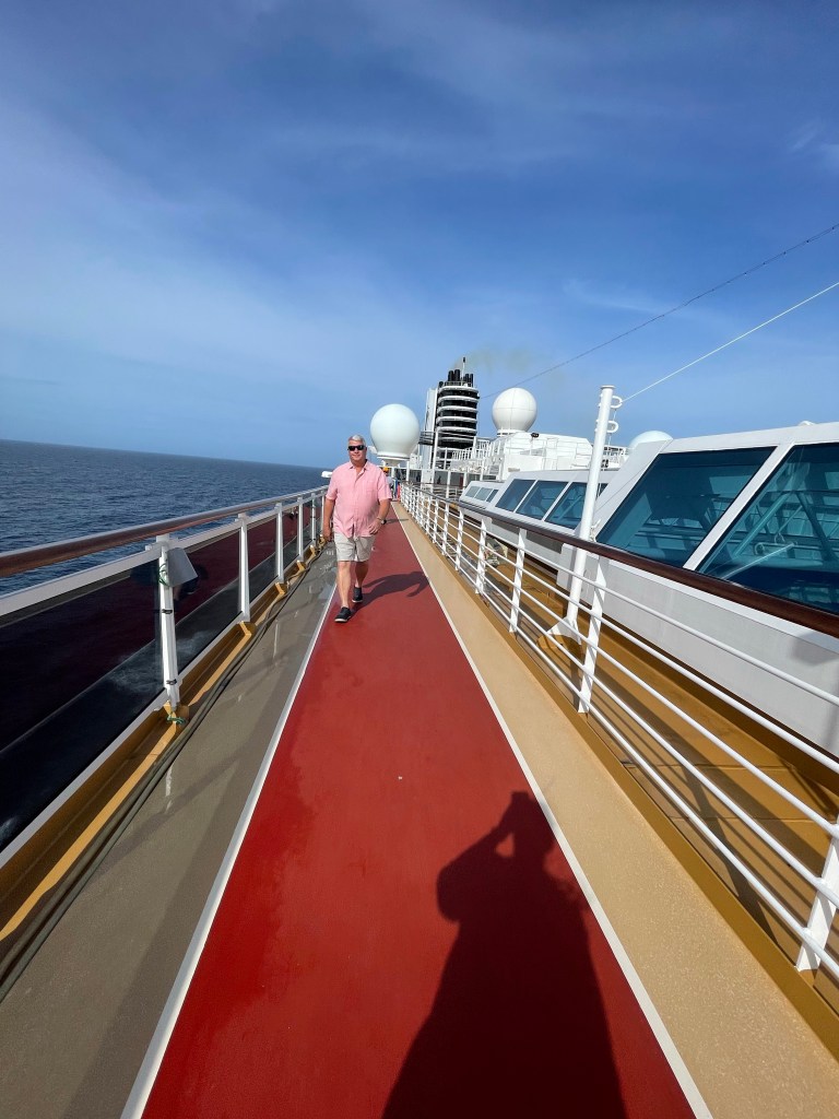 We also enjoy doing laps on the track on the upper deck or walking around the outside of the ship on deck 3 (which isn’t as windy).
