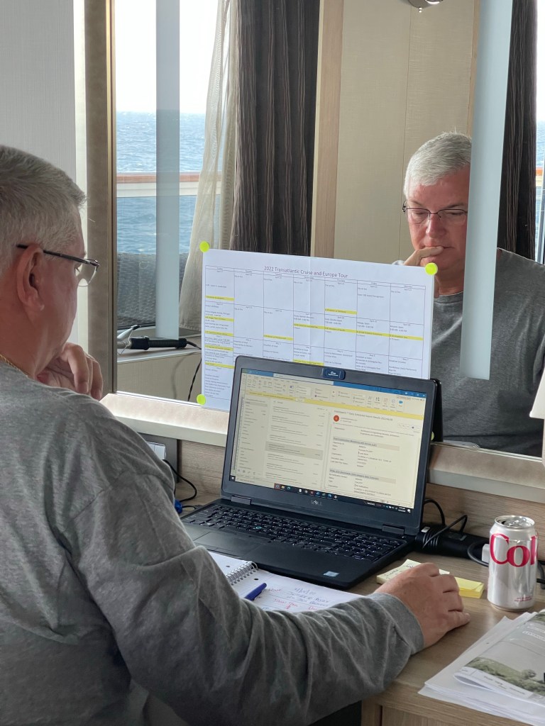 Looks like a very relaxing cruise with enough to keep you busy. Love reading your blogs every day and tomorrow you should see land. Enjoy!!