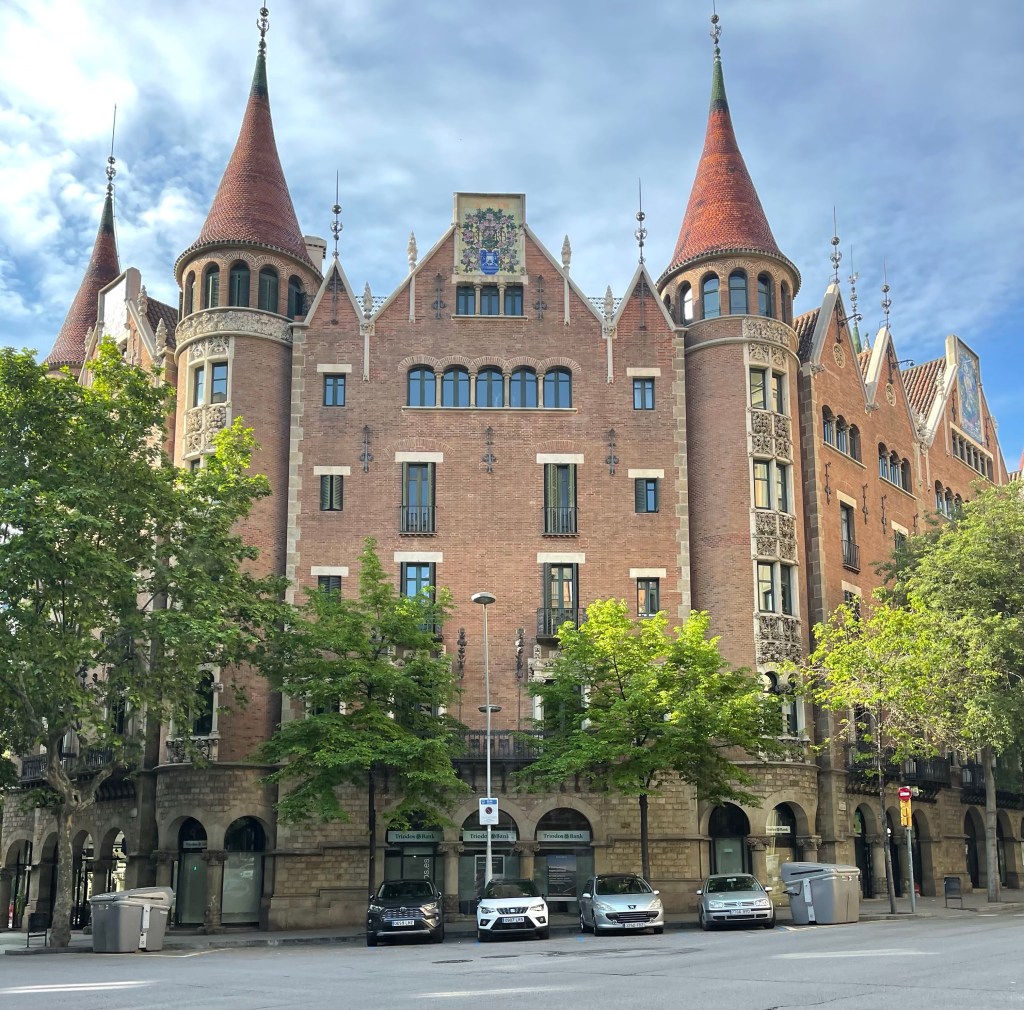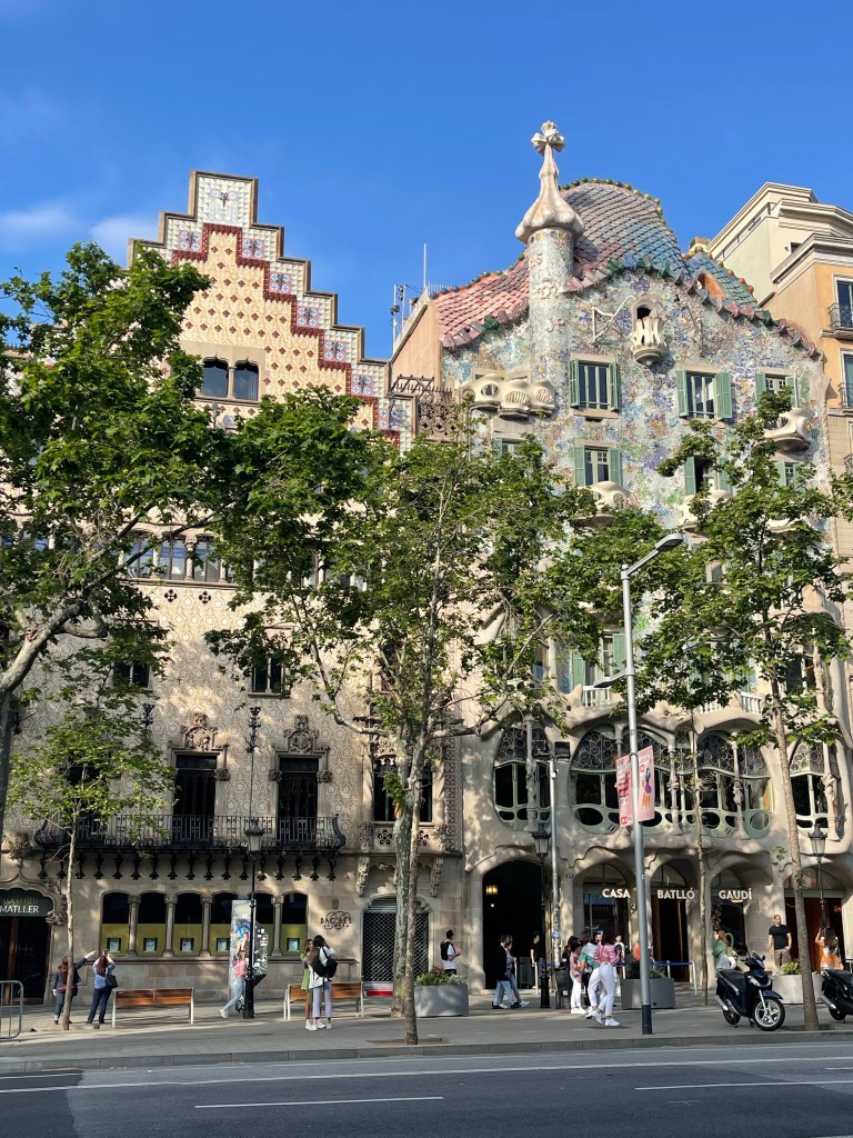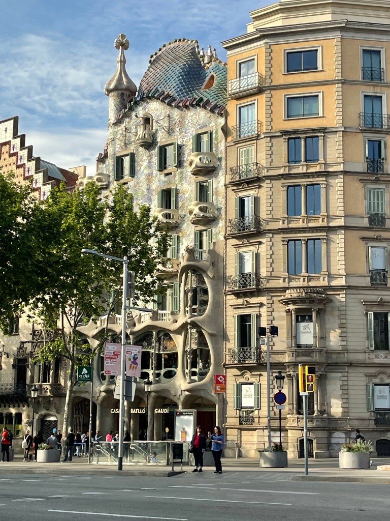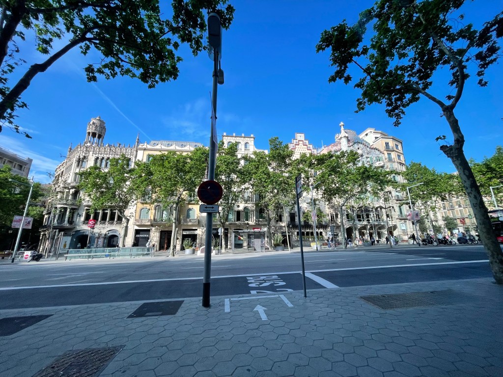 The building on the right side was done by famous architect Antoni Gaudi. He has a very unique style and most of his buildings are rounded with very little straight lines.