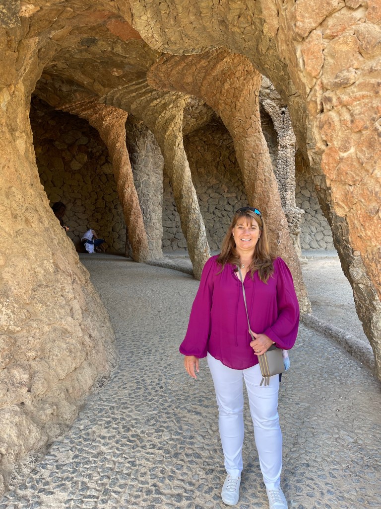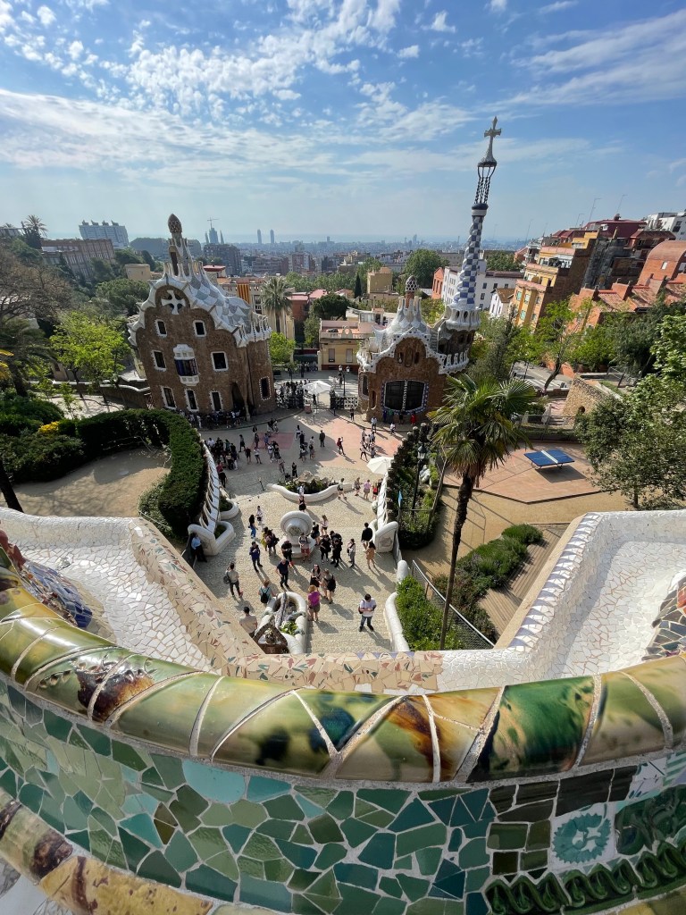 Next we went to Park Güell (pronounced Park Gway). This whole area was designed by Gaudi to be a 42 acre residential development for 60 houses. The houses were built as models, but for various reasons the lots didn’t sell and eventually the park was sold to the city of Barcelona.