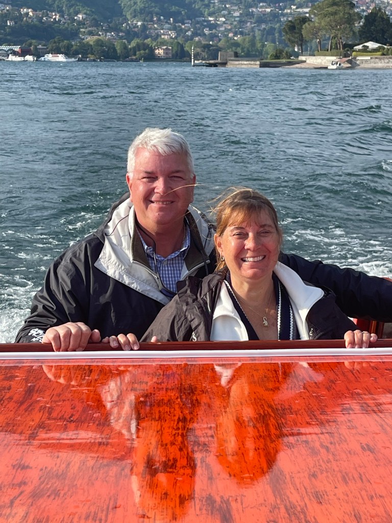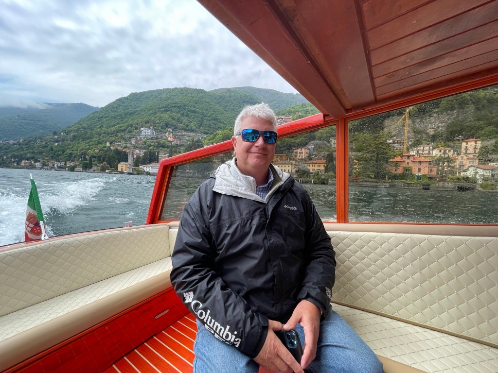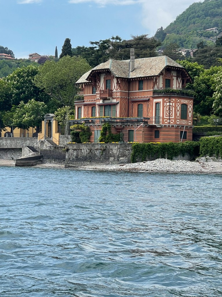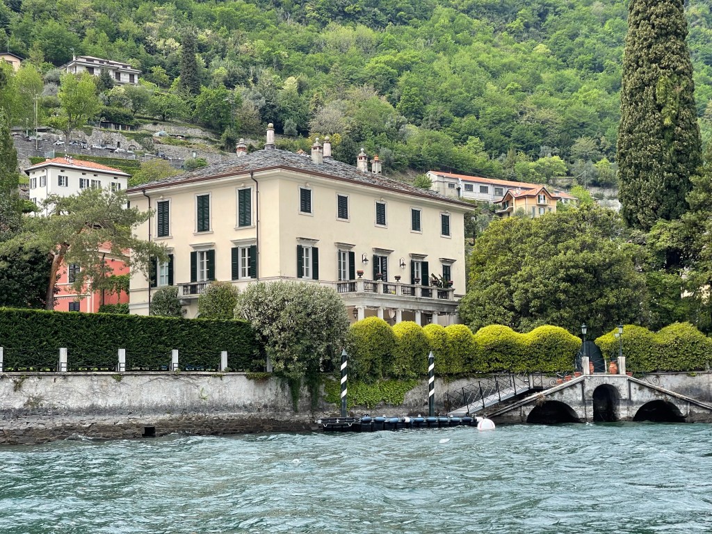 This is the boat we went on. It actually worked out better than the one we originally requested since this one was covered and it was threatening to rain. The lake was rough and we were glad we could scoot under the cover to stay drySo many pretty houses around the lakeVersace’s house until he passed away. Elton John, Princess Diana, Sting, Madonna, and Jennifer Lopez have all stayed there. George Clooney’s house. He is only at this house from June to September every year. Jennifer Aniston, Matt Damon and Prince Harry with Meghan Markle have all visited here. Love how the houses seem to flow right into the lakeTaking in the sightsRichard Branson of Virgin companies owns this house. You can only get to it by boat!This is Villa Balbianello where scenes from Star Wars Episode II and James Bond Casino Royale were filmed. The scene from Star Wars “where Anakin steals a kiss”James Bond Casino RoyaleA luxury hotel on the lake