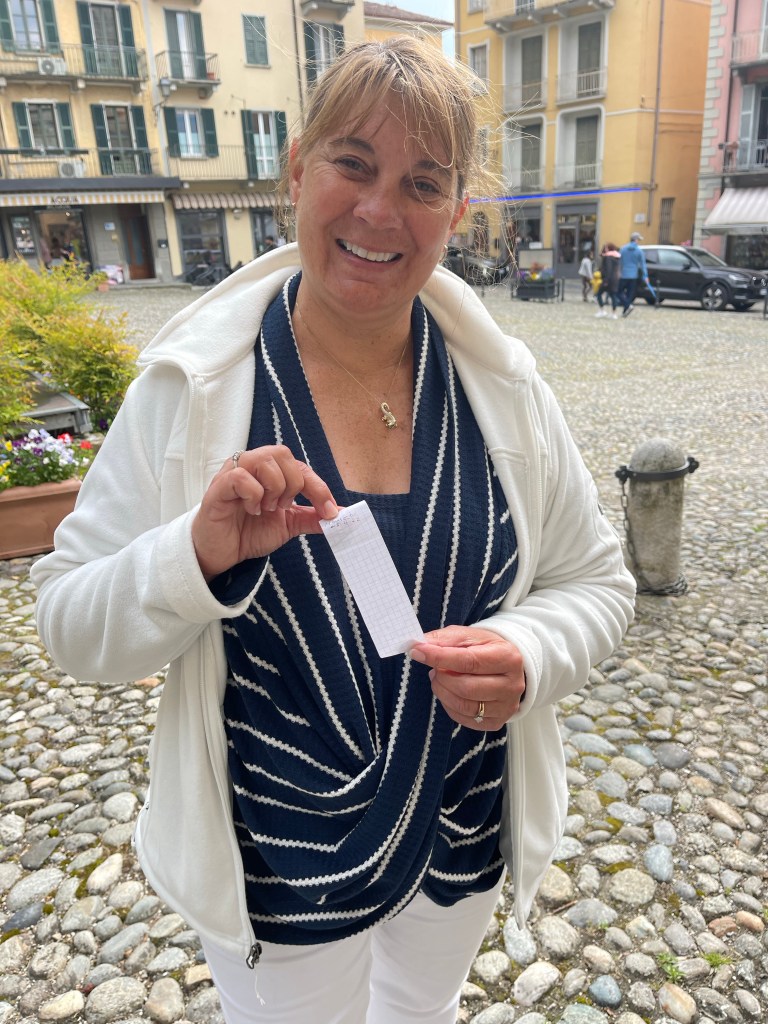 Lots of little alleys with stairs since the town is built on a hillOf course we had to search for a geocache while we were here!Found it, but didn’t have a pen to sign the logWe can’t walk by gelato without stopping!So pretty!Orrido di Nesso , a beautiful hidden waterfall into the lakeAn elevator to reach the higher buildingsWe lucked out with the rain this afternoon. It held off until later this evening