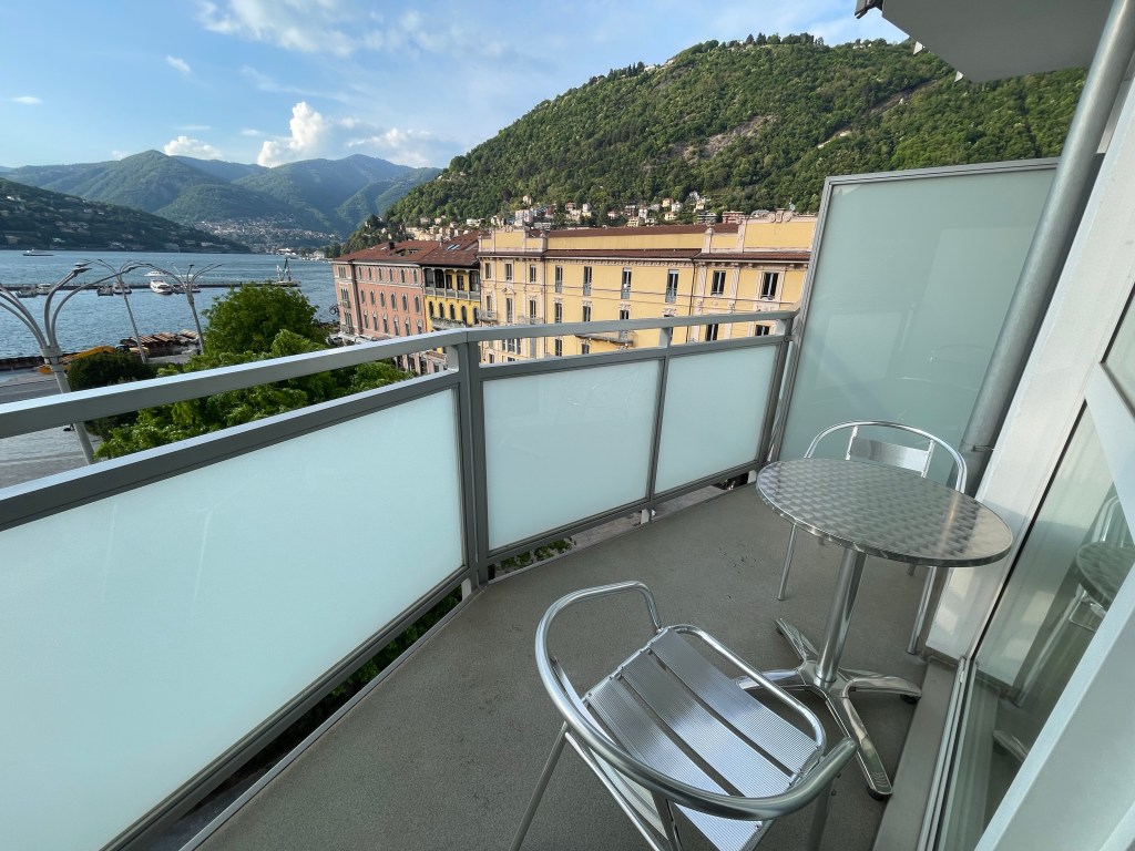 Another sunrise from our balcony. Woke up a little later today!Peaceful in the early morningA little rainy this morning as we drive through various Italian townsOur hotel room at Hotel Buchetta Excelsior in ComoThe view from our balcony with Lake Como in the backgroundWhat a cool parking garage! Fully automated. You drive your car into it, get out, and the attendant punches in what parking space it will go in. It then drops down, spins to The correct space, and lifts your car into the spot. There are two garages with seven levels and spots for eleven cars each.